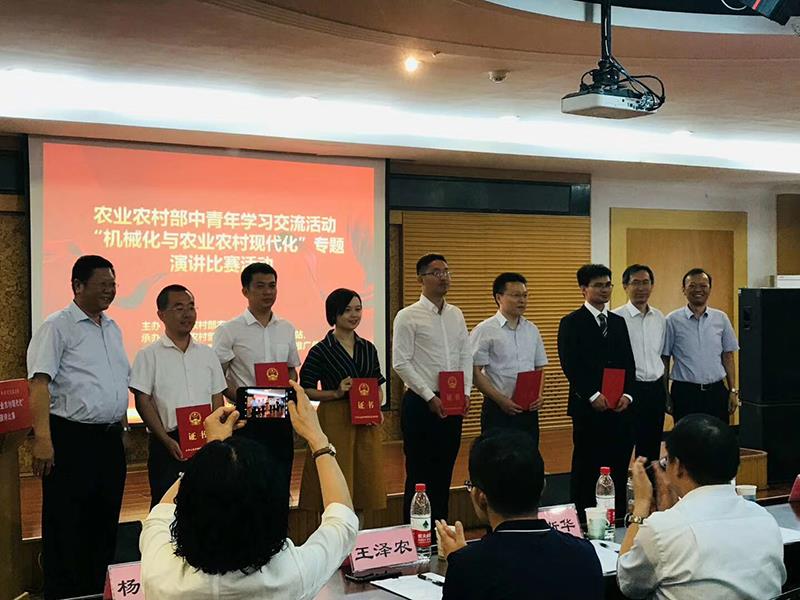 2019年8月30日,农业农村部2019年中青年干部学习交流(机械化与农业农村现代化专题)活动暨颁奖典礼在农业农村部机械试验鉴定总站召开,活动由农业农村部农业机械化管理司主办,农业农村部农业机械试验鉴定总站、农业农村部农业机械化技术开发推广总站、中国农机安全报社承办,主办承办单位领导及论文获奖者和演讲选手等参加活动。